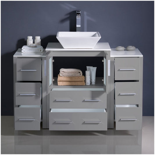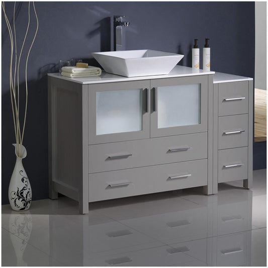 Torino 48 Gray Modern Bathroom Cabinets w/ Top, Vessel Sink FCB62-122412GR-CWH-V