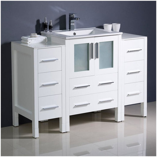 Torino 48" White Modern Bathroom Cabinets w/ Integrated Sink, FCB62-3612WH-I