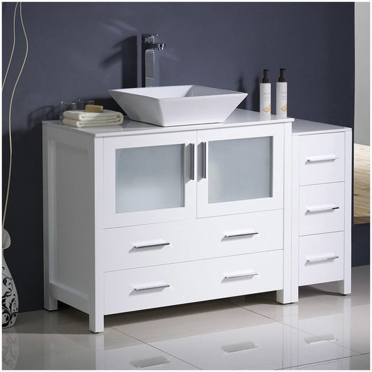 Torino 48 White Modern Bathroom Cabinets w/ Top, Vessel Sink FCB62-3612WH-CWH-V