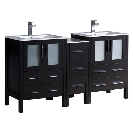 Torino 60" Espresso Modern Double Sink Bathroom Cabinets w/ Integrated Sinks