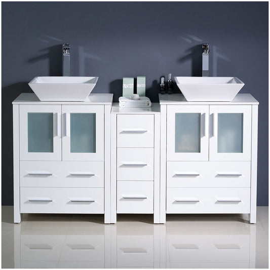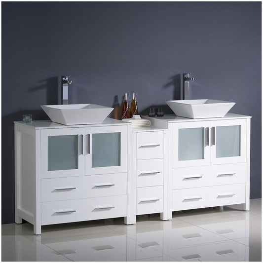 Torino 72" White Modern Double Sink Bathroom Cabinets w/ Tops & Vessel Sinks