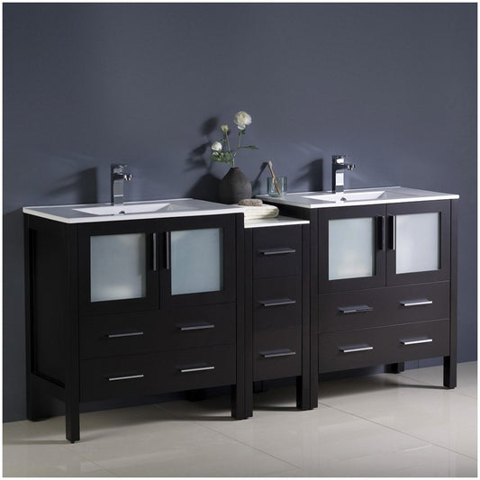 Torino 72" Espresso Modern Double Sink Bathroom Cabinets w/ Integrated Sinks