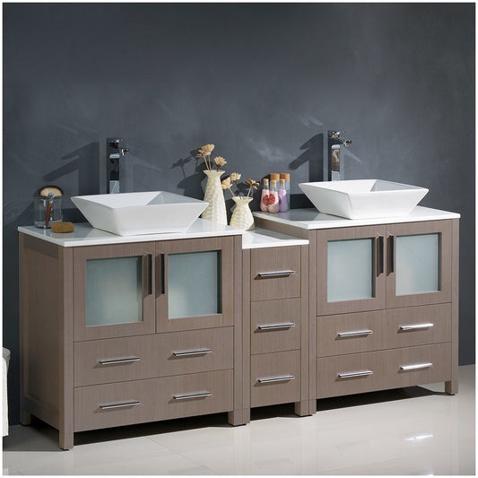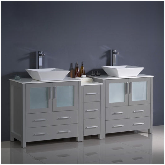 Torino 72" Gray Modern Double Sink Bathroom Cabinets w/ Tops & Vessel Sinks