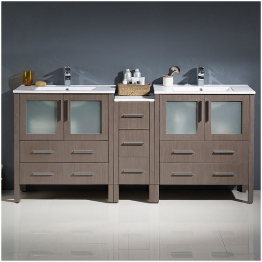 Torino 72" Gray Oak Modern Double Sink Bathroom Cabinets w/ Integrated Sinks