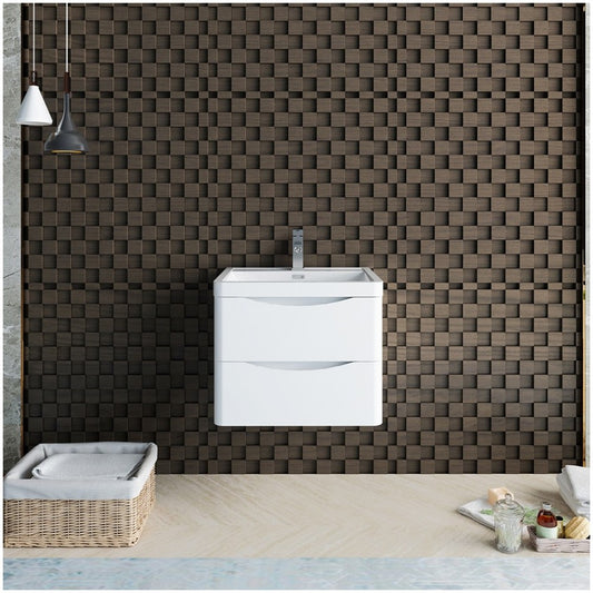 Tuscany 24" Glossy White Wall Hung Modern Bathroom Cabinet w/ Integrated Sink