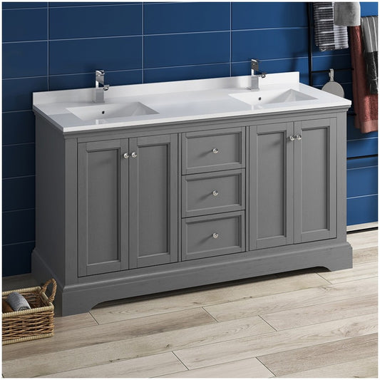 Windsor 60 Gray Textured Traditional Double Sink Bathroom Cabinet w/ Top & Sinks