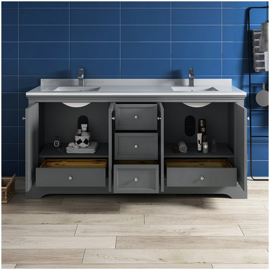 Windsor 72 Gray Textured Traditional Double Sink Bathroom Cabinet w/ Top & Sinks