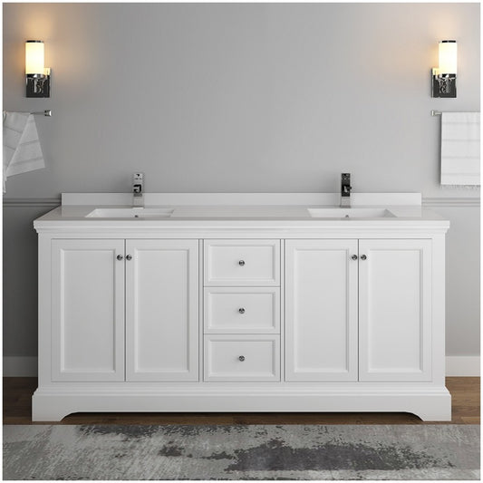 Windsor 72" Matte White Traditional Double Sink Bathroom Cabinet w/ Top & Sinks