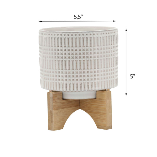 Cer, 5" Tribal Planter W/ Stand, Ivory
