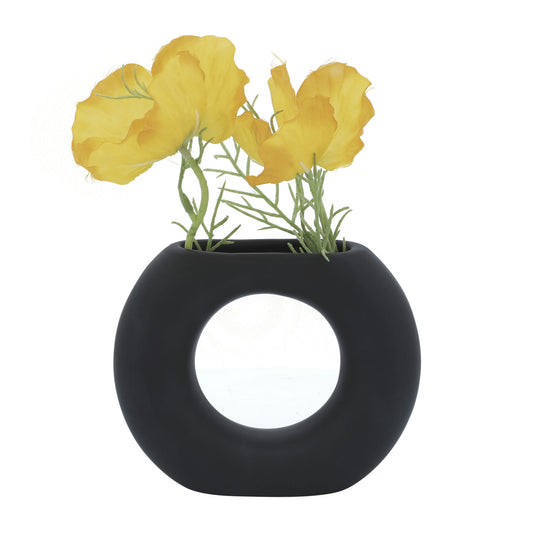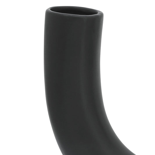 Cer, 8"h U-shaped Vase W/ Base, Black