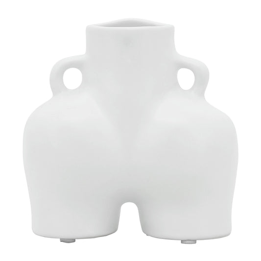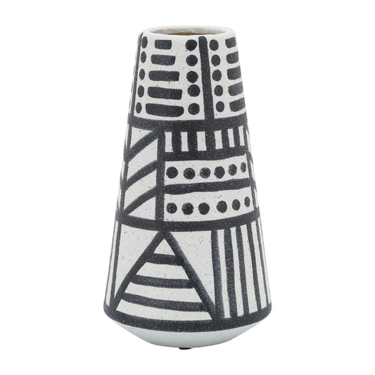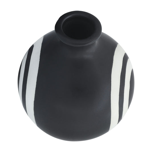 Cer, 7"h 2-tone Teardrop Vase, Creme/blk