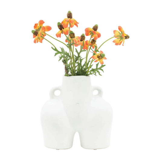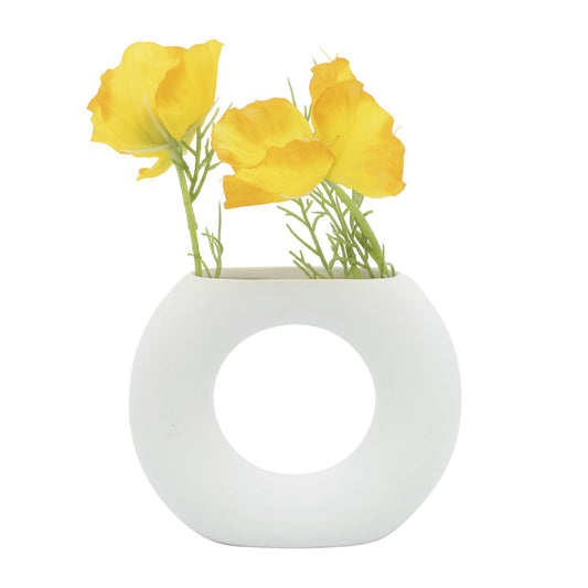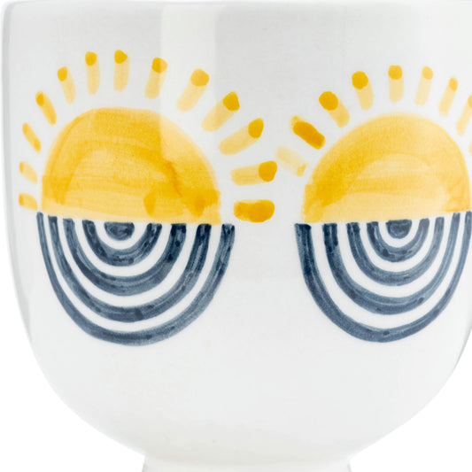 Cer, 7"h Sunrise Eyes Flower Vase, Wht/yllw/blue