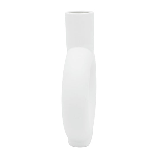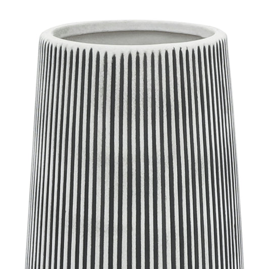 Cer, 9"h Spiral Dot Flower Vase, White/black