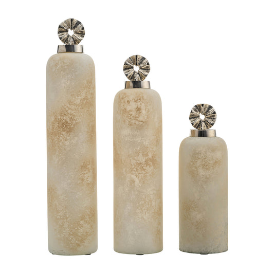 Glass, 19" Metallic Bottle W/ Stone Top, Silver