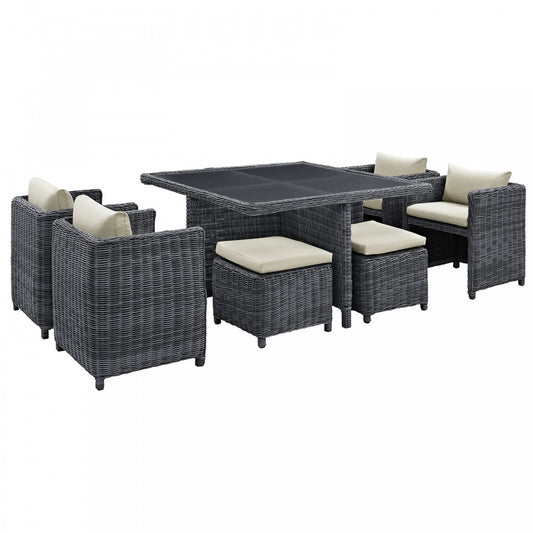 Summon 9 Piece Outdoor Patio Sunbrella Dining Set, Antique Canvas Beige, EEI-1947-GRY-BEI-SET