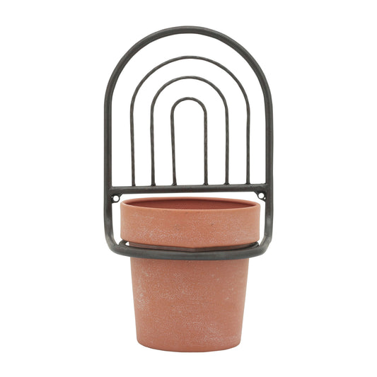 Metal, 11"h Wall Planter, Black/terracotta