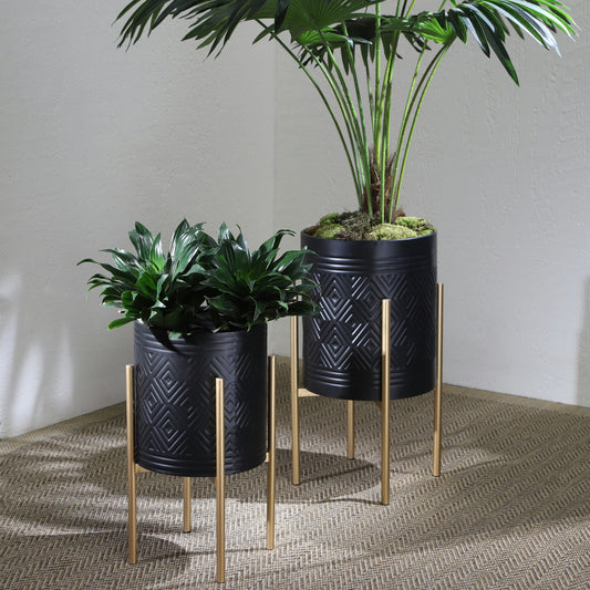 S/2 Planter On Metal Stand, Black/gld
