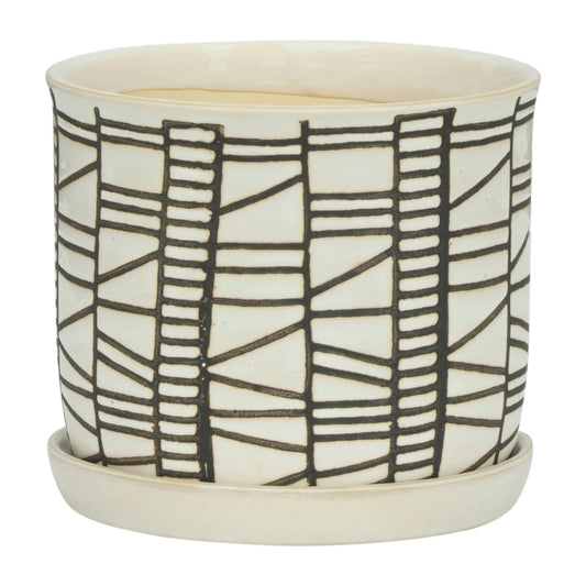 S/2 Ceramic 6/8" Planter W/ Saucer, Beige