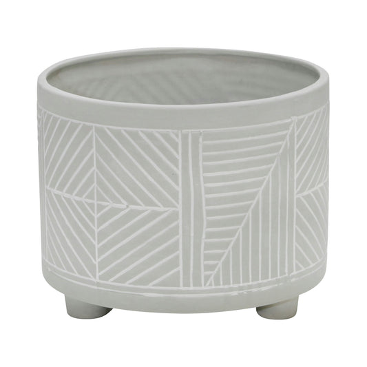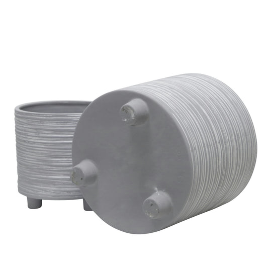 S/2 Footed Planter W/ Lines 6/8", Gray