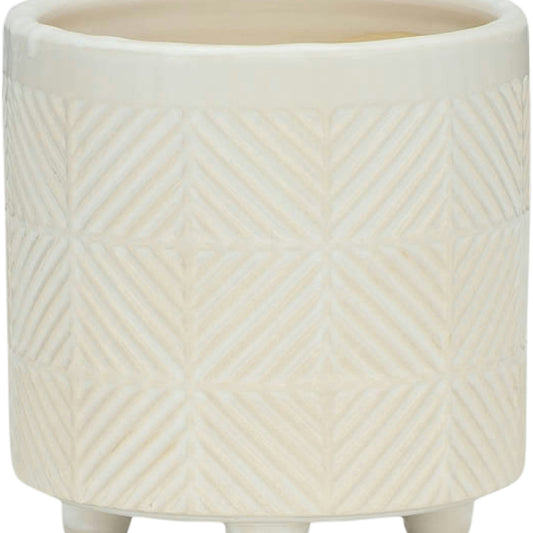 S/2 Ceramic 6/8" Scribble Footed Planter, Beige