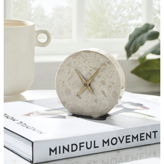 Tyra Cream, Beige Engineered Marble Circle Table Clock