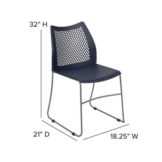 661 lb. Capacity Navy Stack Chair with Air-Vent Back and Gray Powder Coated Sled Base