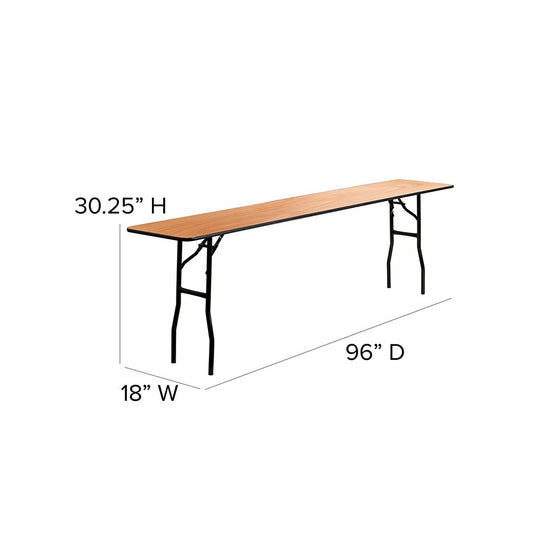 8-Foot Rectangular Wood Folding Training / Seminar Table with Smooth Clear Coated Finished Top