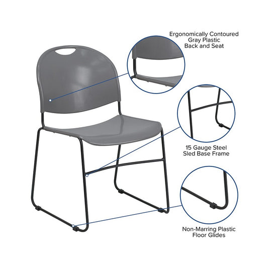 880 lb. Capacity Gray Ultra-Compact Stack Chair with Black Powder Coated Frame