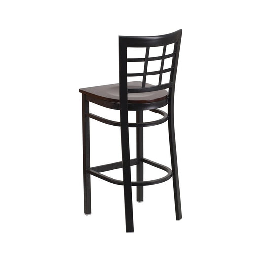 Black Window Back Metal Restaurant Barstool - Walnut Wood Seat