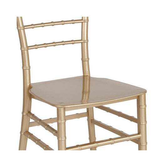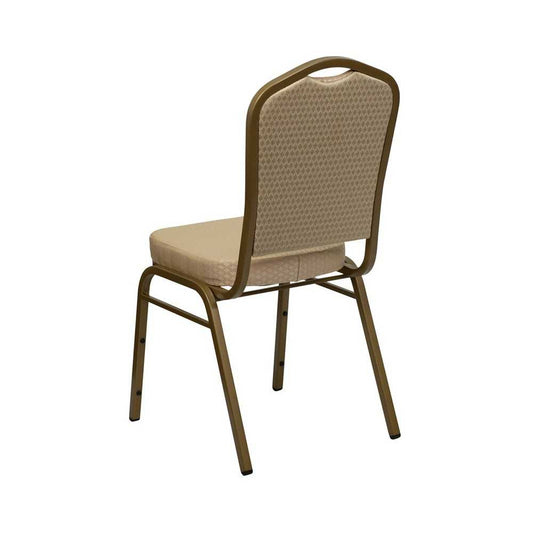 Crown Back Stacking Banquet Chair in Beige Patterned Fabric - Gold Frame