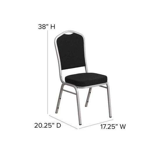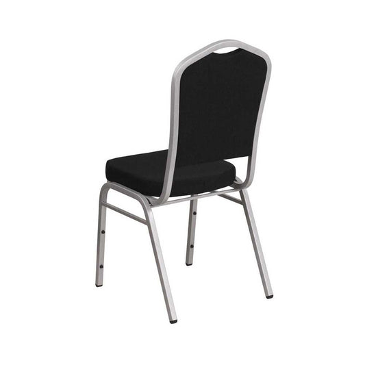 Crown Back Stacking Banquet Chair in Black Fabric - Silver Frame