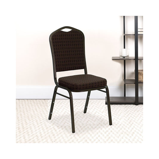 Crown Back Stacking Banquet Chair in Brown Patterned Fabric - Gold Vein Frame