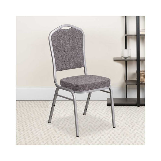 Crown Back Stacking Banquet Chair in Gray Dot Fabric - Silver Frame