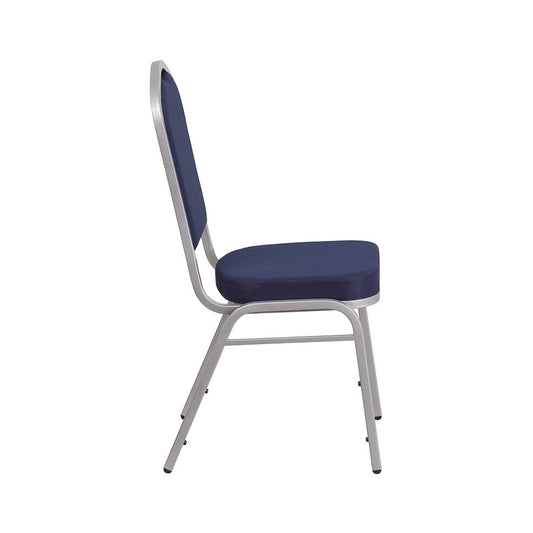 Crown Back Stacking Banquet Chair in Navy Fabric - Silver Frame