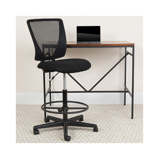 Ergonomic Mid-Back Mesh Drafting Chair with Black Fabric Seat and Adjustable Foot Ring
