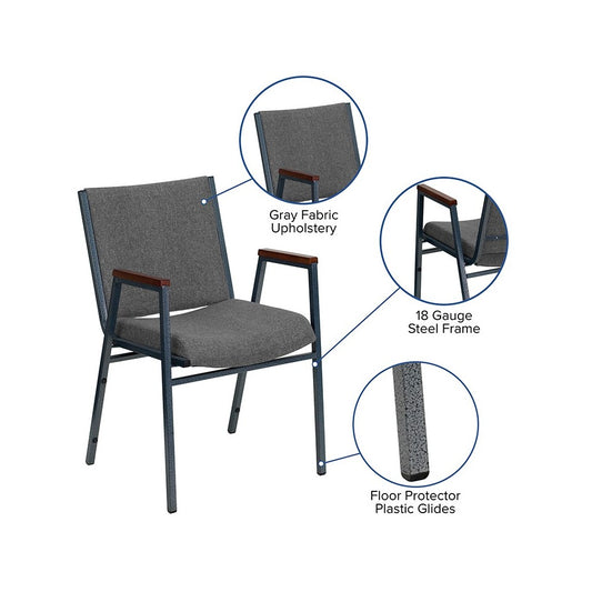 Heavy Duty Gray Fabric Stack Chair with Arms
