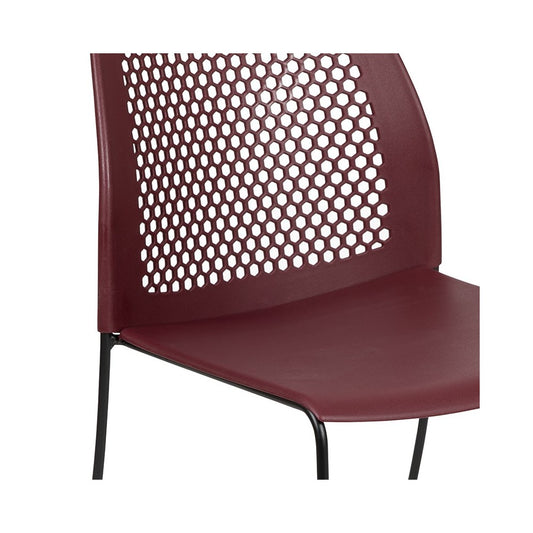 661 lb. Capacity Burgundy Stack Chair with Air-Vent Back and Black Powder Coated Sled Base