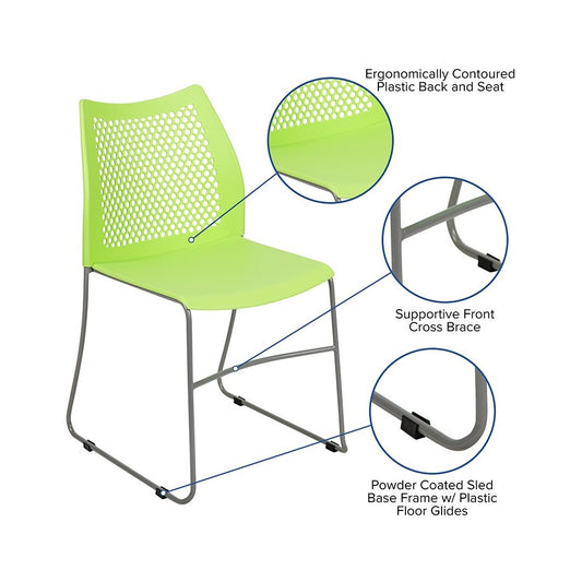 661 lb. Capacity Green Stack Chair with Air-Vent Back and Gray Powder Coated Sled Base