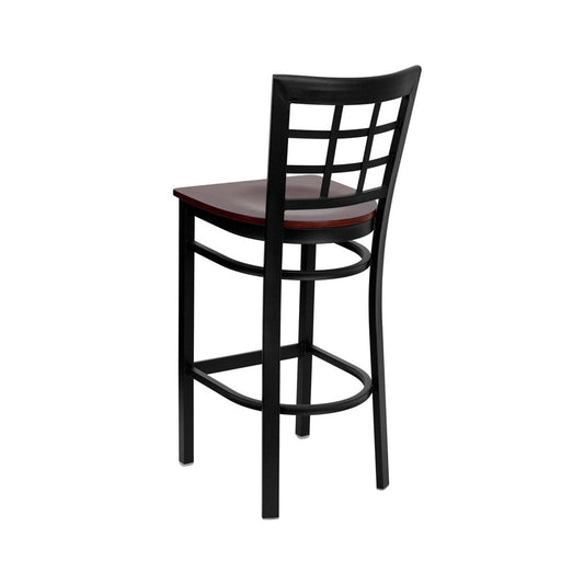 Black Window Back Metal Restaurant Barstool - Mahogany Wood Seat