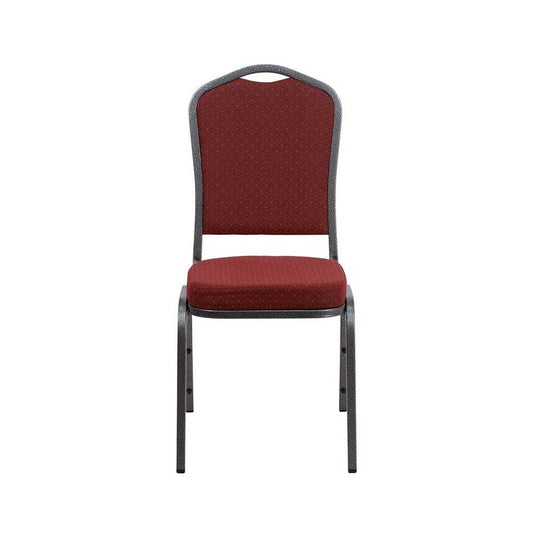 Crown Back Stacking Banquet Chair in Burgundy Patterned Fabric - Silver Vein Frame