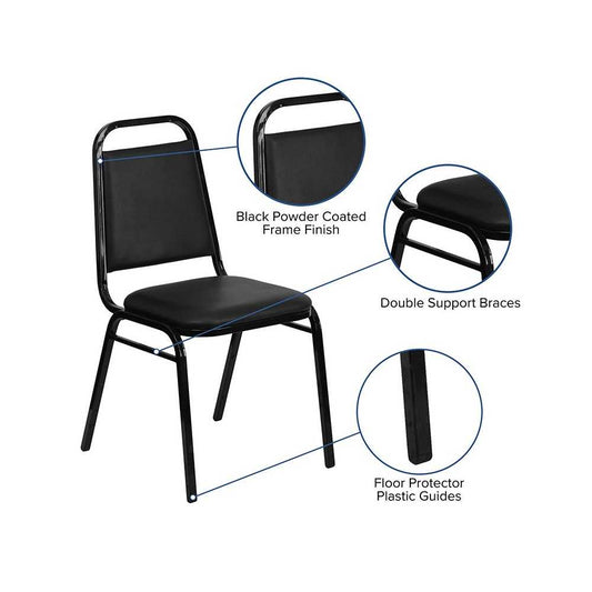 Trapezoidal Back Stacking Banquet Chair in Black Vinyl - Black Frame