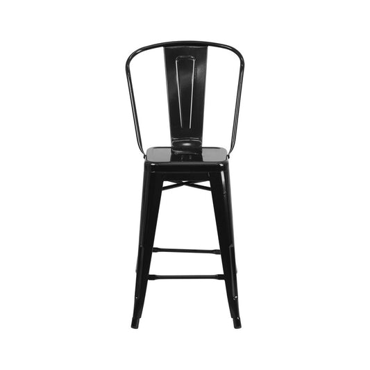 Commercial Grade 24" High Black Metal Indoor-Outdoor Counter Height Stool with Removable Back