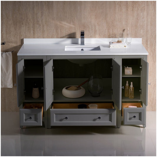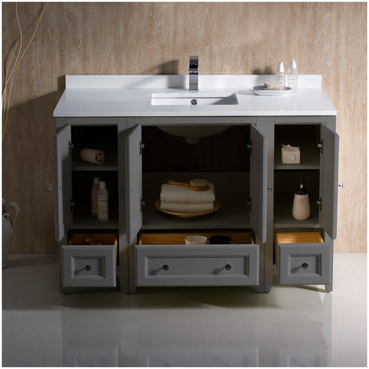 Fresca Oxford 54" Gray Traditional Bathroom Cabinets w/ Top & Sink
