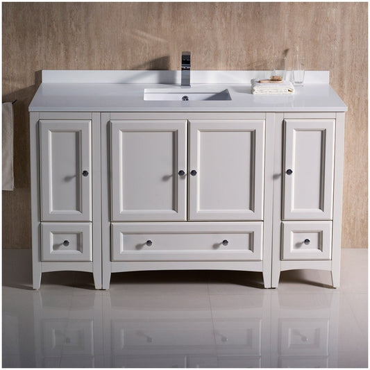 Fresca Oxford 54" Antique White Traditional Bathroom Cabinets w/ Top & Sink