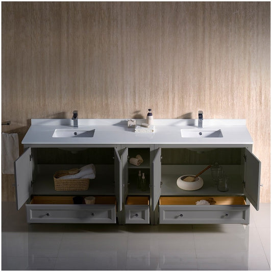 Fresca Oxford 84" Gray Traditional Double Sink Bathroom Cabinets w/ Top & Sinks