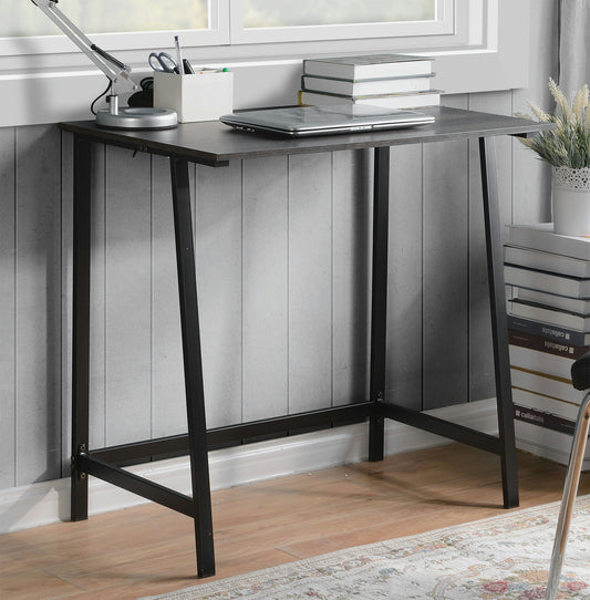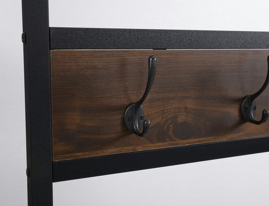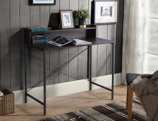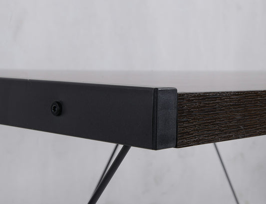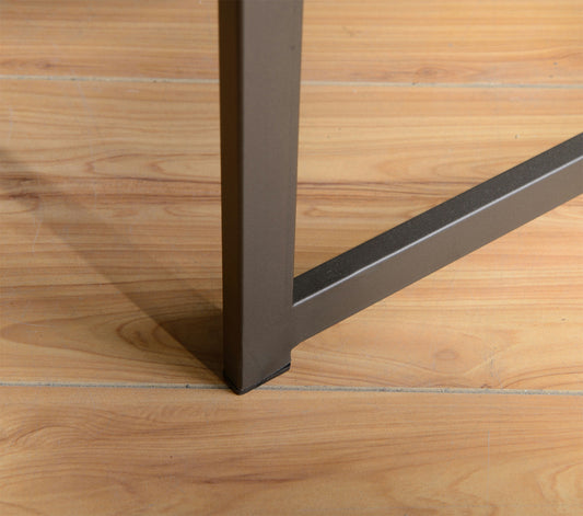 Dark Wood Finish Top Hexigon Side Table With Metal Base