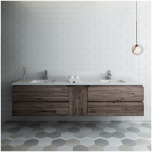 Fresca Formosa 84" Wall Hung Double Sink Modern Bathroom Cabinet w/ Top & Sinks