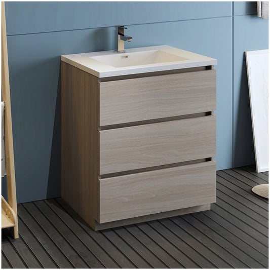 Fresca Lazzaro 30" Gray Free Standing Modern Bathroom Cabinet w/ Integrated Sink