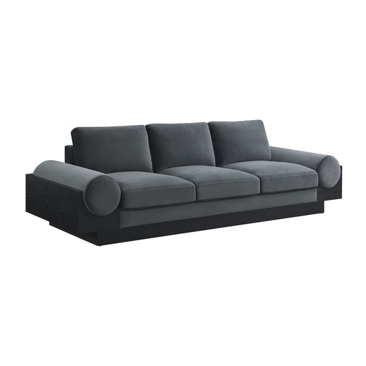 3- Seater Bolster Sofa - Black Wood Base - Dark Gr