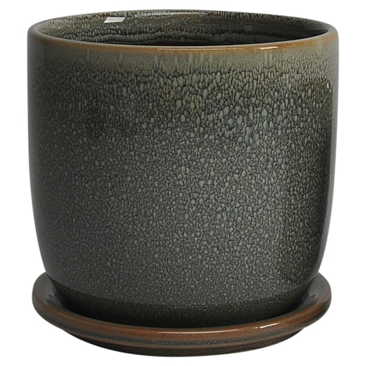 Cer, S/2 5/6" Planter W/ Saucer, Olive